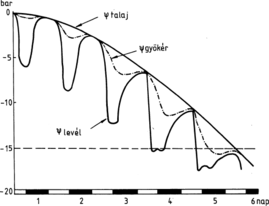 - A talajban levő víz állapota, hozzáférhetősége, a gyökerek vízfelvétele