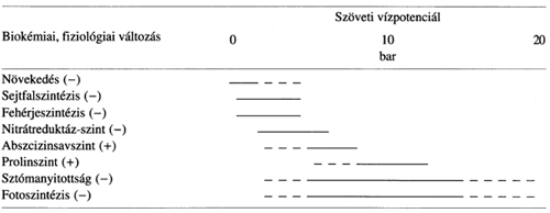 A vízdeficit kialakulása, a biokémiai, fiziológiai folyamatok eltérő érzékenysége