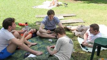 A Kopaszi-gát estéje ezután egy hajnalig tartó önfeledt és informális beszélgetésbe, italozásba fordul. Végül a nehezen megközelíthető külvárosi helyről való közös kiscsoportos hazajutás is sok kalandos-vicces élményt, sztorit termel.