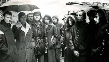 A Rajk névtábla elhelyezése a kollégium falán, 1975