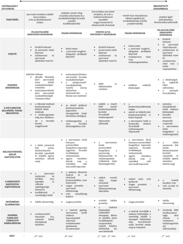 2. táblázat. A vezetés hatása a szakmai közösségek alkulására, működésére az elemzett esetekben