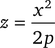 Forgásparaboloid úgy származtatható, ha egy parabolát tengelye körül körbeforgatunk. Legyen a p paraméterű tengelyponti parabola az xz koordinátasíkban; ekkor egyenlete .