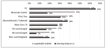 Megjegyzés: Kb. 4000 játékfejlesztő megkérdezése alapján, több válasz adható volt, Game Developers Conference 2019.