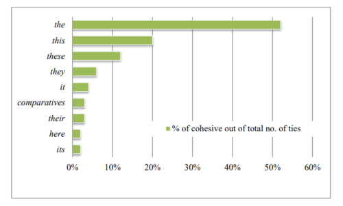 The percentage of cohesively used referring items in the corpus | 35% | Total number of cohesive chains containing more than two cohesive ties |