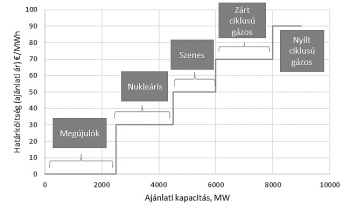 | 1 | A gyakorlatban este általában nem a hazai magas határköltségű gázmotorok indulnak el, hanem a balkáni vízerőművek, de árukat az alternatívaköltséghez, azaz az alacsony hatékonyságú gázerőművekéhez szabják. |