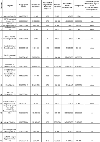 - 3.10. FÜGGELÉK: A BÉT-re bevezetett és 2009 és 2022-ben is jegyzett, egykori állami tulajdonú cégek listája