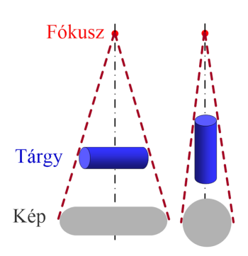 A keletkezett kép mindig nagyobb a valóságos képletnél.