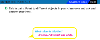 Example task 6 was scored 3.5 points. The seven criteria are partly met. Criterion 6 is at least partly met in every speaking activity in the student’s book as the tasks to a certain extent attempt to link classroom language learning with language activation outside the classroom. Language activation outside the classroom can have several forms. It can, for instance, mean encouraging the students to use L2 just for the sake of having fun. In example task 6, criterion 6 is only partly met since the exercise narrows down language use to the topic “classroom” with classroom objects, colours and demonstrative pronouns. This topic may not be overly motivating for students outside the classroom.