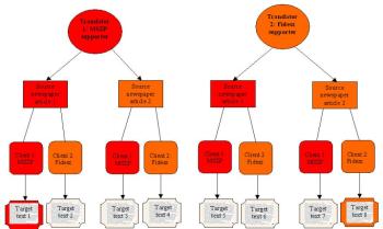 In Figure 7.2, the translation assignment is visualised and a visual representation of the two translators’ political commitment, the political affiliation and bias of the source newspaper articles, the clients and the resulting target texts is provided.