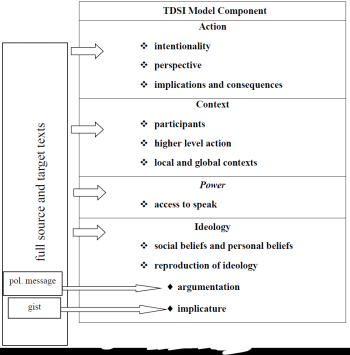 The source and target texts are analysed along the aspects of the four components of the TDSI Model. The results thus obtained are compared to reveal bias and the (re)production of ideology.