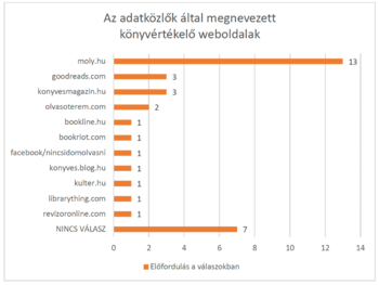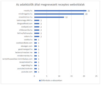 Az alábbi két ábrán a Függelék I.-ben szereplő kérdőív 2. szakaszában található harmadik kérdésre („Amennyiben találkozott már receptes/könyvértékelő weboldalakkal, fel tudna sorolni ezek közül néhányat név szerint?”) adott válaszokat mutatom be.