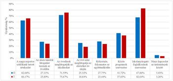 Az intézmények közötti kapcsolattartás többféleképpen megvalósulhat. A vizsgálatban részt vevő óvodapedagógusok (N = 1232) és tanítók (N = 1348) nyilatkoztak arról, hogy a 13.3. ábrán felsorolt módszerek közül melyeket használják az intézmények közötti együttműködés hatékonyságának elősegítésére.