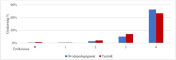 A szakszolgálatokkal való együttműködés szintén a hatékony szakmai munka része kell, hogy legyen a gyermekek fejlődése érdekében. A válaszadó óvodapedagógusok (N = 1232) 79 százaléka, a tanítók (N = 1348) 70 százaléka tartja nagyon fontosnak a kooperációt az intézmények (óvoda, iskola, szakszolgálat) között (13.4. ábra). A vizsgálat arra is rámutatott, hogy a válaszadó óvodapedagógusok csupán 2,76 százaléka kéri fejlesztőpedagógus támogatását, hogy segítséget nyújtson az óvodában maradt gyermekeknek nehézségeik leküzdésében. A tanítók 17,43 százaléka vonja be munkájába fejlesztőpedagógus vagy iskolapszichológus kollégáját.