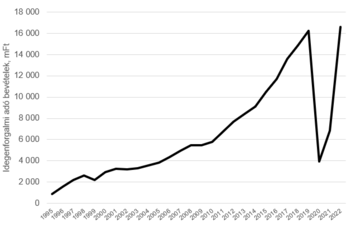 3. ábra. Idegenforgalmi adóból származó bevételek 1995-től 2022-ig