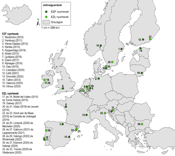 Az EZL-díj tízéves története során, 2015-től 2025-ig összesen 75 város mérettette meg magát, amelyek közül 17 el is nyerte a címet. Az EZF- és EZL-díjak létezése óta a 2025-ös fordulóig összesen 33 nyertest (16 EZF, 17 EZL) hirdettek ki (1. ábra). Az EZL- és az EZF-díjak a magyar városok körében nem túl népszerűek; az EZL-re eddig összesen három magyar város (Kaposvár, Nagykőrös és Szentes), míg az EZF-re két város (Budapest és Pécs) nevezett, de egyik sem jutott be a döntőbe. Sajtóhírek szerint a 2027-es fordulóra Debrecen is pályázni fog mint leendő Európa Zöld Fővárosa,1 de EZL-pályázásról egyelőre nincs hír a kis- vagy középvárosok részéről.