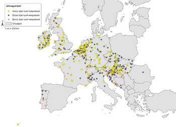 2. ábra. Az Entente Florale Europe arany-, ezüst- vagy bronzdíját elnyert települések 1996 és 2024 között