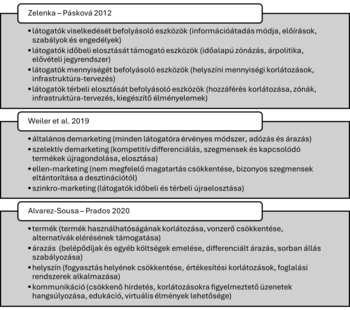 A szakirodalomban számos megközelítés található a látogatómenedzsment eszköztáráról, amelyek alapján három fő koncepcionális irány különböztethető meg (1. ábra).