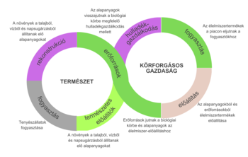 A rövid ellátási láncok és a helyi élelmiszerrendszerek hozzájárulnak a körforgásos szemléletmód erősítéséhez az élelmiszerrendszerekben. Az 1. ábra szemlélteti a biológiai kör (természet) és a körforgásos gazdaság kapcsolatát az élelmiszertermékek esetében.