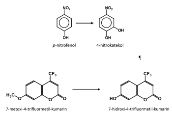 12.4. A p-nitrofenol hidroxiláz és a 7-metoxi-4-trifluormetil-kumarin O-demetiláz reakciói