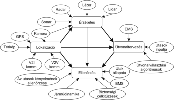 Érzékelés: a felismerés, az osztályozás és a virtuális 3D-s képalkotás kombinált feladata. Ebben a szakaszban a CAV-ot számos fedélzeti érzékelő, például elosztott kamerák, radar, LiDAR, laser, sonar stb. segíti. Ezenkívül a lokalizáció kimenete is felhasználásra kerül ebben a szakaszban.