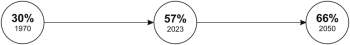 Évről évre egyre több ember él városokban: az 1970-es években a világ lakosságának 30%-a élt városokban, 2014-re ez 54%-ra nőtt, és 2050-re a becslések szerint el fogja érni a 66%-ot (2.2. ábra). A megnövekedett lakosság statikus és dinamikus elhelyezése, azaz lakhatása és mobilitása egyaránt kihívásokat jelent a városokban, és csökkenti az egy főre jutó városi élettér nagyságát.