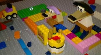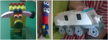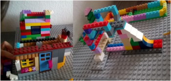 Általában konstrukciós játékot játszik, épít szinte mindenből. Mindig három figurát: apa, anya és a kicsinyük, szerepjátékai során is ők a központi szereplők.
