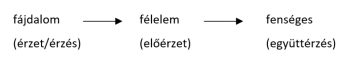 A válasz az értekezés jóval későbbi részeiből érkezik, az általános szenvedélyelméleti mátrixot felvázoló I. rész ugyanis nem szálazza szét fájdalom és félelem viszonyát. Megteszi ezt viszont Burke a IV. rész elején, ahol kifejezetten e két szenvedély különbségét veszi terítékre egy olyan fejtegetés keretében, mely a fenséges kiváltó okainak próbál utánajárni, hogy később (ugyanazon rész második felében) mindezt a széppel kapcsolatban is megtegye. Burke ebben a részben „a fájdalom vagy a halál előérzeteként [apprehension]” határozza meg a félelmet (IV.3: FV, 158, ford. mód.; PE, 131), egy az egyben úgy, ahogy ezt már két résszel korábban, a II. rész rettenetről szóló második fejezetében is tette (II.2: FV, 67; PE, 57). A félelem (vagy szélsőséges formája, a rettegés) mindkét helyen egy érzet érzeteként, a fájdalom érzetének balsejtelemszerű „előérzeteként” jelenik meg.8 A félelem állapotában a fájdalomnak pusztán az ideája van jelen számunkra, maga a fájdalom viszont, amitől tartunk, a jövőbe tolódik. Ebből világosan látszik, hogy a félelem már maga is bizonyos távolságban van a fájdalomtól, amikor tehát a fenséges érzését Burke nemcsak a puszta fájdalmon, de a puszta félelmen is túlra helyezi, akkor kettős távolságba állítja a fájdalomhoz képest.