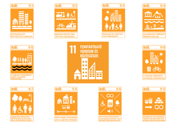 - 11.1. alcél: 2030-ra megfelelő, biztonságos és megfizethető lakhatás és alapszolgáltatások biztosítása mindenki számára és a nyomornegyedek fejlesztése.