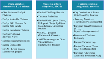 • desztinációs és ágazati szintű díjak, címek, elismerések (Európa Zöld/Kulturális/Okos turizmus/Innovációs Fővárosa);