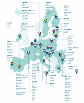 21. ábra. A „100 klímasemleges és okos város küldetés” programban részt vevő városok az Európai Unióban