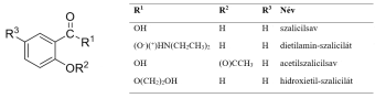 szalicilsav és származékai (szalicilátok),