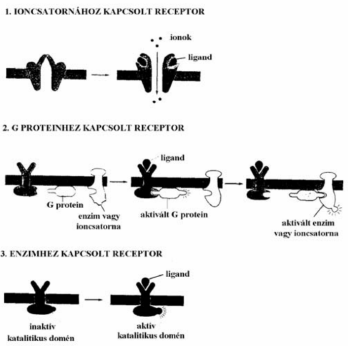 A neurotranszmittereknek pl. olyan receptoraik vannak, amelyek ioncsatornákhoz kapcsoltak. A neurotranszmitterek kötődése nyitja vagy zárja a csatornát, így a membrán ionáteresztőképessége és ennek következtében a sejt ingerlékenysége megváltozik. Ezek a receptorok illetve hatások nem kerülnek részletesebb tárgyalásra a továbbiakban.