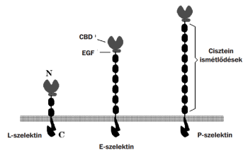 Nem a kadherinek az egyetlen Ca2+-ionfüggő sejt–sejt adhéziós molekulák. A szelektin család képviselői olyan fehérjék, amelyek egy szénhidrát felismerő és kötő domént ún. C lektin domént tartalmaznak, amely segítségével más sejtek sejtfelszíni oligoszacharid csoportjaihoz tudnak kötődni. A szelektinek által létrehozott kötődési típust heterofil kötődésnek nevezzük (XI.2. ábra).
