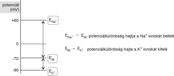 Az ionoknak egy adott pillanatban a membrán két oldalán fennálló koncentráció különbsége, valamint a membránnak az adott ionokra való permeabilitása.