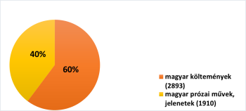 | 9 | A magyar költők között több mint 60% azok aránya, akiknek csak egy vagy két költeménye jelent meg a lapban a vizsgált időszakban. Az összes magyar versírót számítva (beleértve a prózát is közlő alkotókat, az eddig feloldatlan álnéven és név nélkül publikálókat is, valamint a népdalokat is egyszerzős műnek tekintve) a 424 fő közül 196-an egyetlen, 68-an pedig két költeménnyel jelentkeztek. Ez az összes szerző ~62,3%-a. Hozzávéve a harmincegy háromműves alkotót, az összes szerző közel ~70%-át teszik ki (69,6%). Természetesen a dilettánsok mellett idetartoznak azok az elsősorban prózaírók, akik egy-egy alkalommal költeménnyel is jelentkeztek, így a „közös” csoportba kerültek, noha nem költőként működtek. |