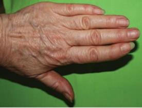 Még nincs a röntgenen ízületi destrukció, legfeljebb enyhe ízületközeli demineralizáció. Klinikailag szimmetrikus, tapintható ízületi duzzanatok, deformitás nélkül.