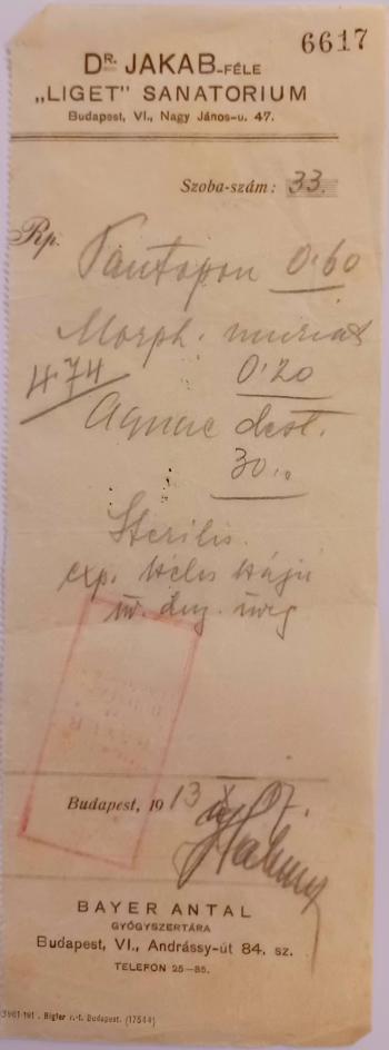 Recept Csáth Géza számára. Budapest, 1913. október 17. PEKT (Veszprém), Ms Csáth 3/2/1.