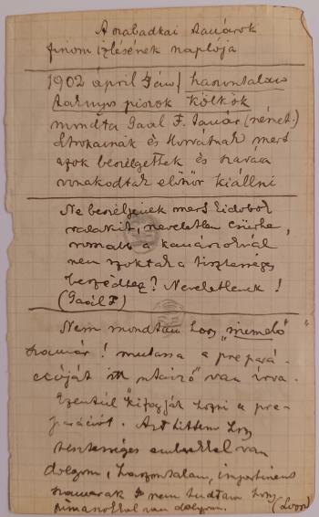 Csáth Géza: A szabadkai tanárok finom izlésének naplója. [Szabadka, 1902. április 4.] PEKT (Veszprém), Ms Csáth 6/1.