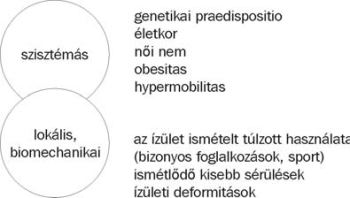 metabolikus, endokrin háttér (pl. kristályarthropathiák, ochronosis, haemochromatosis, acromegalia, hyperparathyreosis, hypothyreosis),