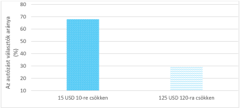 Képzeld el, hogy egy kabátot (125 USD) és egy számológépet (15 USD) készülsz vásárolni. A számológépet árusító eladó arról tájékoztat, hogy ugyanazt a számológépet leárazták 10 dollárra az áruházlánc másik boltjában. A másik bolt autóval 20 perc. Átmennél a másik boltba?