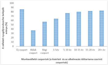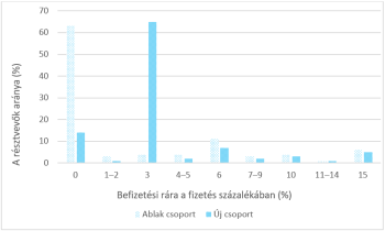 24. ábra. Az „ablak” és az „új” csoportok befizetési arányai a vállalati nyugdíjmegtakarítási rendszerbe.