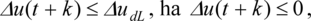 - Beavatkozó szerv holtjátékának kompenzálása. A holtjáték (dead zone) tartományában a beavatkozó szerv nulla kimenő jelet ad. Ha a holtjátékot a sebességre és a kimenetre is vonatkoztatjuk, és tartományaikat rendre ΔudL, ΔudH, udL, udH definiálja, akkor a holtjáték kiküszöbölésére a következő feltételek teljesülését kell garantálni:Ezeknek a feltételeknek a kiértékelése azonban bonyolult a megkülönböztetendő esetek miatt. Az optimalizálási feladat elveszíti konvex jellegét, ezért az optimum meghatározására ebben az esetben elsősorban az evolúciós technikák (genetikus algoritmus stb.) javasolhatók. A továbbiakban ezzel a korlátozási típussal nem foglalkozunk.