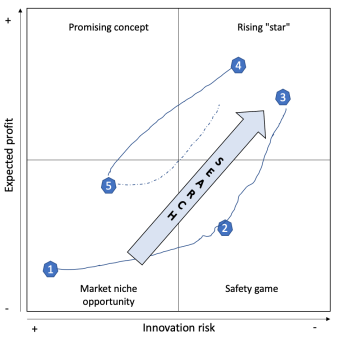 transfer: the discoverer confirms the assumptions related to the project and is able to generate significant profits, so it is transferred to the exploitation portfolio and becomes one of the company's main cash-generating business lines or ventures.