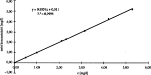 Mintaszám | Bemérés alapján számított konc. [mg/l] |