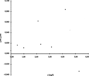 Mért konc. [mg/l] | Mért és számított konc különbsége [mg/l] | Visszanyerés [%] |