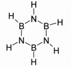 - A borazint 1926-ban állították elő először ammónia és borán reakciójával:2 B2H6 + 6 NH3 = 2 B3N3H6 + 12H2.A vegyület szerkezete igen érdekes:A B-N kötések azonos hosszúságúak, a molekula teljesen sík. Az aromás illatú folyadék termodinamikai szempontból igen stabilis.Mi jellemzi a vegyület elektronszerkezetét? Mi okozhatja a különleges stabilitást?