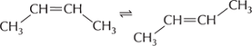 - A cisz-2-butén – transz-2-butén izomerizációs reakció egyensúlyra vezet:Az egyensúlyi állandó K=0,4. A reakció mindkét irányban elsőrendű és az „oda” irányú reakció sebességi koefficiense, = 4,2·10–4 s–1.Mennyi értéke? Mennyi az egyensúlyi koncentráció, ha 0,1 mólos tiszta cisz-komponensből indulunk ki?
