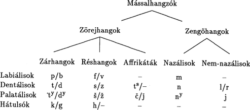 A magyar mássalhangzókészlet a következö huszonnégy elembél áll: