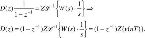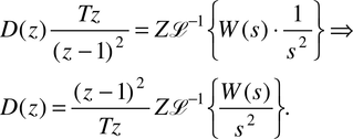 - Sebességugrás ekvivalencia esetén azt akarjuk, hogy a W(s) analóg tag és annak D(z) közelítése az u(t) = t · 1(t) bemenő jelre egyformán válaszoljon (a mintavételi időpontokban), ezért (F4.13) felhasználásával a célMivel a sebességugrás jelnek nagyobb a teljesítménye, mint az egységugrás jelnek, ezért általában a sebességugrás ekvivalenciájú közelítés jobb az egységugrás ekvivalenciájú közelítésnél.