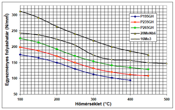 - h) Ötvözetlen, gyengén ötvözött csőanyagok folyáshatára [7.70]